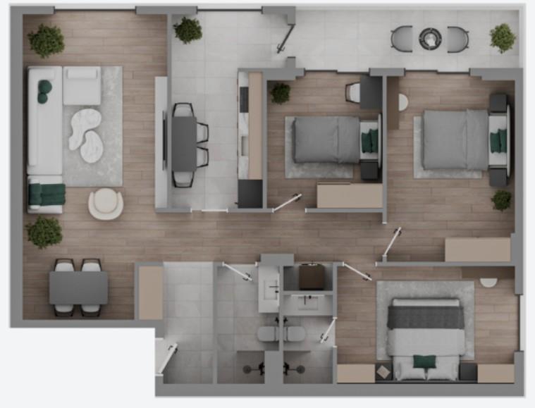 All apartments are distinguished by modern planning, energy efficiency, and high-quality exterior/interior finishes.