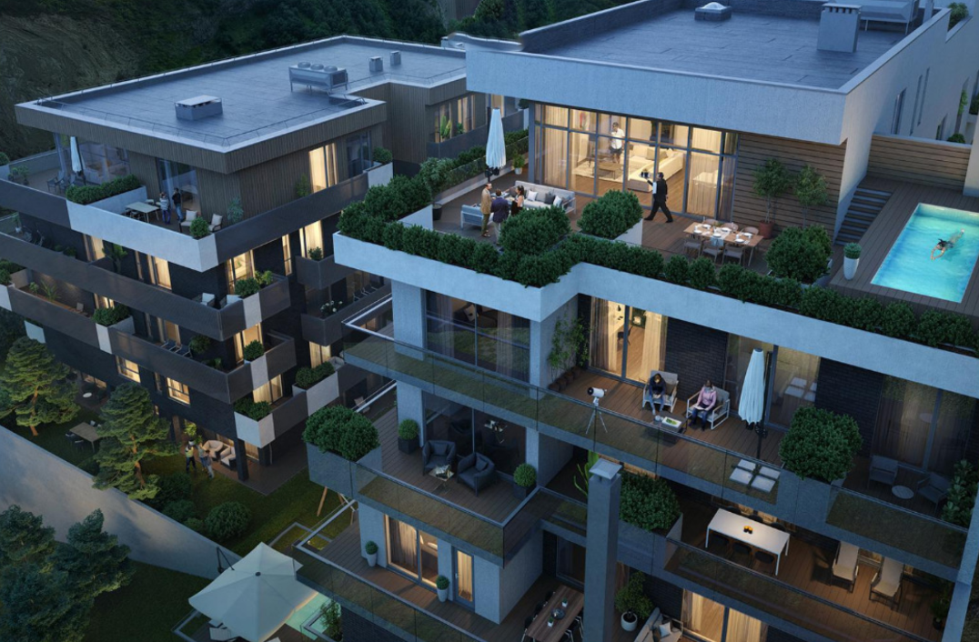 გასაყიდი ბინების ფართობი 52-დან 231 კვადრატულ მეტრამდეა, ოთახებში ჭერის სიმაღლე 3.2-3.65 მეტრს აღწევს, ოთახების რაოდენობა ორიდან ხუთამდე მერყეობს. თითოეულ ბინას აქვს უზარმაზარი პანორამული ფანჯრები, ფართო გამწვანებული ტერასები. VIP ბინების მფლობელებს თავიანთ განკარგულებაში გააჩნიათ კერძო აუზები.